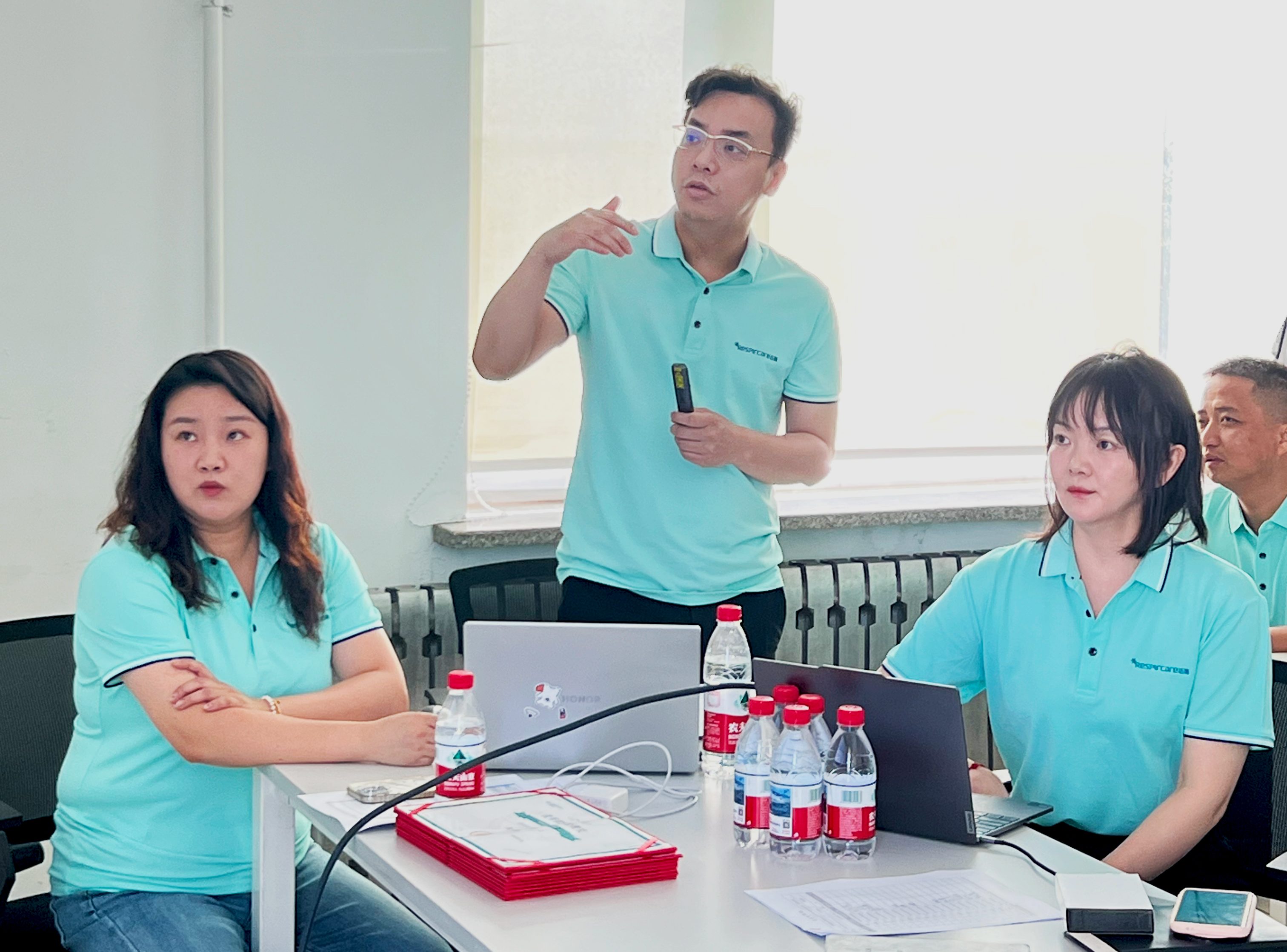 市場(chǎng)部對(duì)邁思主要系列產(chǎn)品濕化器、高流量呼吸濕化治療儀、家用治療型呼吸機(jī)產(chǎn)品以及即將上市的新產(chǎn)品進(jìn)行了培訓(xùn)。